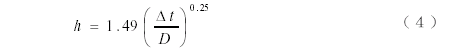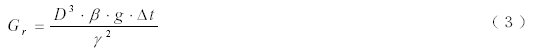 代入數據得Gr=1.1673╳10-7,而普朗特數Pr=0.7085,故Pr× Gr=8.2703╳105,在1╳104~1╳109 之間,判斷流態為層流。相應的對流換熱系數計算公式為
