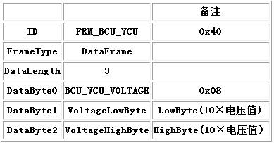 表1BCU_VCU_VOLTAGE(0x08)向VCU送回電池組當前的電壓