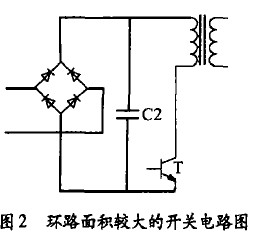 如圖2為環(huán)路面積較大的開(kāi)關(guān)電路,圖3為環(huán)路面積較小的開(kāi)關(guān)電路。
