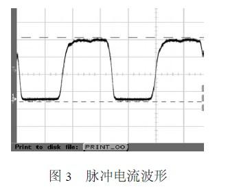 此保護電路已經應用于實踐,由于限流措施穩定可靠,半導體激光器的使用壽命得到了保證。利用功率器件的開通與關斷強制吸收和隔離浪涌沖擊,使得在脈沖工作狀態下的浪涌沖擊也被很好地抑制,圖3是電源工作在脈沖狀態下,負載實際的電壓波形。