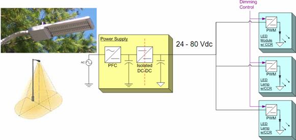 圖2:典型的模塊化LED區域照明電源架構示意圖。