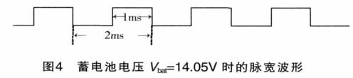 當(dāng)蓄電池的電壓Vbat=14.05V時(shí), 其脈寬波形如圖4所示。