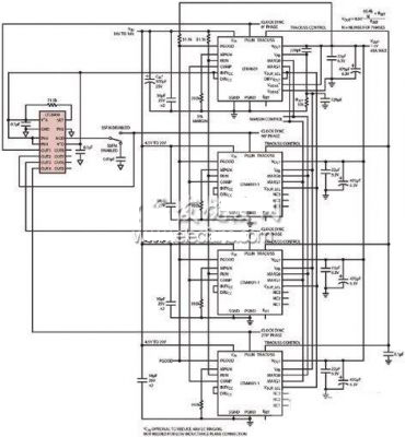 有些應用集中于用4個并聯(lián)的μModule穩(wěn)壓器取代單個開關,這將通過多相同步降低峰值開關電流。這些開關是由一個相位變化的時鐘從外部驅動的。每個開關的接通時刻之間都是有間隔的,從而在輸入中產生均勻的電流分布。在這種大功率系統(tǒng)中,電壓紋波降低了。同步并聯(lián)穩(wěn)壓器的關鍵優(yōu)勢是,由于消除了輸入和輸出中的紋波電流,減小了輸入和輸出電容器的尺寸,從而消除了對大容量電容器的需求。