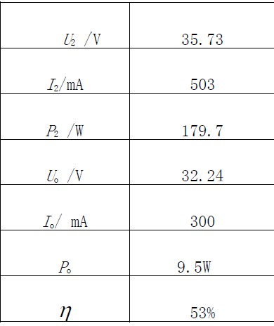 功率因數校正電路輸出的電壓為55V,要求負載為10只串聯的LED燈,實測正常工作時的電壓為34V左右,可得變壓器的變比約為:
