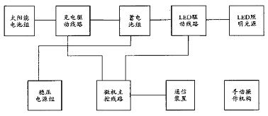 太陽能路燈微機監控系統由微機主控線路、太陽能電池板、蓄電池充放電器、蓄電池組、LED光源驅動和LED燈等幾部分組成。系統組成結構如圖1所示: