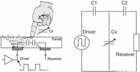 RC時間常數技術的基本原理是,當電容組件C隨手指觸摸改變時,電極區域充電或放電所需的時間也隨之改變。測量充/放電期間的變化可得到C的變化,因為C是未知,所以假設為Cx,這種方法有許多變化形式,可測量頻率或時間、可自由運行或以單周期為基礎。RC時間常數測量的缺點是速度較慢,并易受泄漏電流干擾,其動態范圍也非常有限,很難校準,而且容易受到恒定漂移問題的影響。此外,由于其電路的高阻抗特性,所以也極易受外界噪聲干擾,盡管如此,仍有部分觸控屏幕采用這種方案。