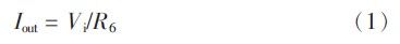 電流控制電路采用數(shù)模轉(zhuǎn)換器芯片TLV5613加上V/I轉(zhuǎn)換電路構(gòu)成穩(wěn)定電流源,可通過(guò)單片機(jī)程序控制輸出所需要的電流給測(cè)量回路供電以滿(mǎn)足系統(tǒng)測(cè)試對(duì)電流的要求。在極性測(cè)試環(huán)節(jié)可給出合適的電流值,便于系統(tǒng)測(cè)量二極管電壓值并據(jù)此判斷二極管的好壞及極性;在特性測(cè)試環(huán)節(jié)可根據(jù)設(shè)定電流值增大或減小回路電流,使其與設(shè)定值一致;在伏安特性曲線繪制環(huán)節(jié)可給出由小到大逐漸增大的電流值便于系統(tǒng)采樣繪圖。