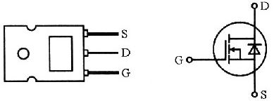 圖7所示為IRFP360的外型及表示符號(hào)。它的特點(diǎn),一是具有隔離式的中心裝配孔,并有重復(fù)性的雪崩定額;二是漏源之間并聯(lián)有反向二極管,其電壓變化率定額很大而且驅(qū)動(dòng)電路比較簡單,此外,同型號(hào)的管子并聯(lián)也很容易。然而,由于MOS管的柵極輸人阻抗較高,容易產(chǎn)生較高的感應(yīng)電壓,從而導(dǎo)致柵極易擊穿,所以在維護(hù)中應(yīng)特別注意。