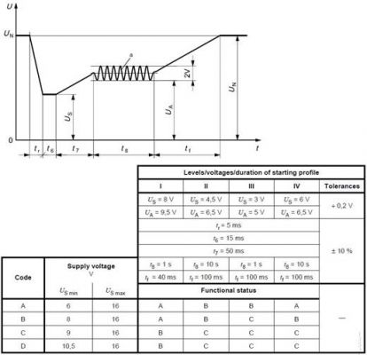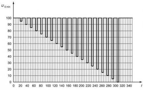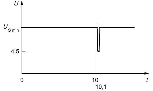 電壓驟降復位性能:檢驗電壓驟降的情況下,模塊的復位性能,適用于具有復位功能的設備。供電電壓以5 %速率從USmin 降到 0.95 USmin,保持5 s,再上升到USmin ,至少保持10 s并進行功能試驗。然后將電壓降至0.9 USmin等,以USmin的5%梯度繼續進行直到降到0V,然后再將電壓升到USmin。
