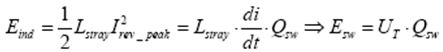 達(dá)到電流峰值tIpeak時(shí),雜散電感中會(huì)儲(chǔ)存感應(yīng)電量,Coss中也會(huì)儲(chǔ)存電容電量。因此,可以進(jìn)行電量比較: