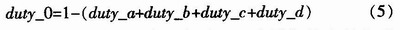 以虛擬整流器、逆變器均工作在第一扇區(qū)為例,相量合成的固定空間電流、電壓相量分別是I6、I1和U6、U1,兩個空間相量的綜合調(diào)制采用相互嵌套的辦法來實現(xiàn)。整個輸入相電流和輸出相電壓相量合成共有I6-U6、I6-U1、I1-U6、I1-U1、I0-U0 5種組合。每一相量組合的作用時間用占空比duty來表示。等式(1~5)反映了占空比的計算公式。占空比可以通過表1來分配給相應的開關(guān)組合。