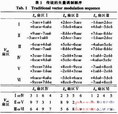 基于上述諸多的優(yōu)點,使矩陣變換器越來越多地被關(guān)注,然而,至今它還不是一個成熟的技術(shù)。焦點主要集中在它的拓撲結(jié)構(gòu),控制方法,換流技術(shù)。通常使用的控制方法是空間矢量調(diào)制法,而在現(xiàn)有的資料中很少有非常詳盡的描述。本文將對矩陣變換器應用雙空間矢量調(diào)制法進行詳盡的分析。