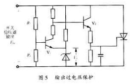 輸出過電壓保護在開關(guān)穩(wěn)壓電源中是至關(guān)重要的。特別對輸出為5V的開關(guān)穩(wěn)壓器來說,它的負載是大量的高集成度的邏輯器件。如果在工作時,開關(guān)穩(wěn)壓器的開關(guān)三極管突然損壞,輸出電位就可能立即升高到輸入未穩(wěn)壓直流電源的電壓值,瞬時造成很大的損失。常用的方法是晶閘管短路保護。最簡單的過電壓保護電路如圖4所示。當輸出電壓過高時,穩(wěn)壓管被擊穿,觸發(fā)晶閘管導(dǎo)通,把輸出端短路,造成過電流,通過保險絲或電路保護器將輸入切斷,保護了負載。這種電路的響應(yīng)時間相當于晶閘管的開通時間,約為5~10μs。它的缺點是動作電壓是固定的,溫度系數(shù)大,動作點不穩(wěn)定。另外,穩(wěn)壓管存在著參數(shù)的離散性,型號相同但過電壓起動值卻各不相同,給調(diào)試帶來了困難。圖5是改進后的電路。其中R1、R2是取樣電路,Vz是基準電壓。