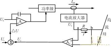 當(dāng)單元輸出電流IO1增加時(shí),IO1在電流檢測(cè)電阻RS上的壓降增加,致使A1輸出電壓增加,與單元電壓反饋信號(hào)Uf疊加后送至A2反相輸入端,經(jīng)A2放大后輸出Ur變負(fù),利用這個(gè)Ur電壓控制單元輸出電流,從而實(shí)現(xiàn)均流。