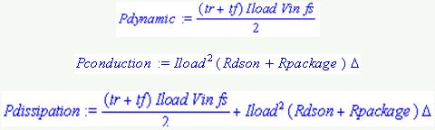 其中:tr和tf =上升和下降時間;Vin =輸入電壓;ILoad =負載電流;Fs =開關(guān)頻率;RDS(ON) = MOSFET導(dǎo)通電阻;ΔPWM = 占空周期;Rpackage =封裝阻抗;