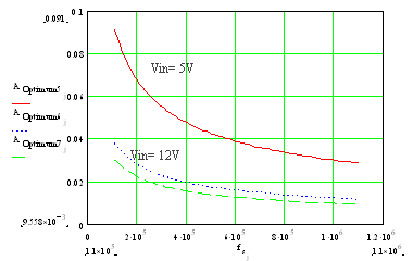 如下圖3所示,是在不同輸入電壓的情況下最優(yōu)化裸片面積和開關(guān)頻率之間的關(guān)系。顯然,在動態(tài)損耗和傳導(dǎo)損耗之間我們需要采取不同的混合,并且在高開關(guān)頻率下動態(tài)或開關(guān)損耗其支配作用,因此,迫使把裸片面積做得非常小。