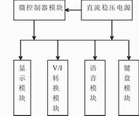 本設計采用單片機作為主要控制部件,通過鍵盤預置輸出電流值并采用液晶模塊實時顯示。整個系統(tǒng)硬件部分由微控制器、電壓-電流轉換、鍵盤、顯示、直流穩(wěn)壓電源和語音提示等模塊組成。系統(tǒng)組成框圖如圖1所示。