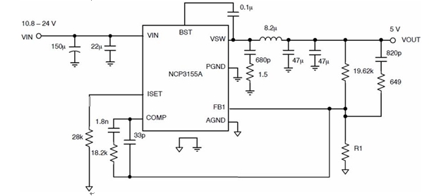 圖 3:NCP3155A 典型應用電路圖。