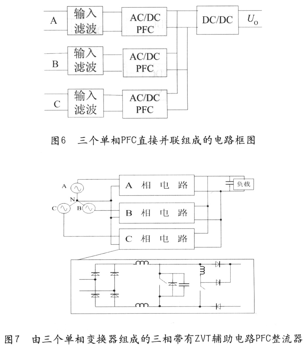 2)由三個單相PFC在輸出端直接并聯(lián)組成的方法