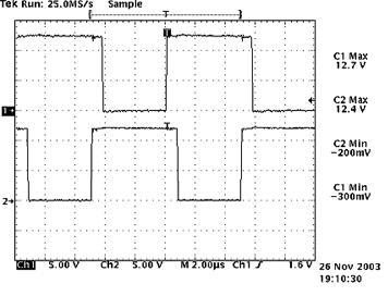本文所設計的驅動電路簡單可行,驅動波形比較理想:有快速的上升沿,并在一開始有一定的過沖,可以加速開通,減小了開通損耗;同時,有反偏截止電壓,提供了足夠的反相門極驅動,減小了下降時間。
