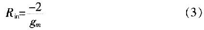 圖3中VQ5,VQ6管的負(fù)跨導(dǎo)可以補(bǔ)償振蕩中的電路損耗,為振蕩提供能量。控制電壓Vr控制變?nèi)荻O管電容的變化,以達(dá)到控制振蕩頻率的目的。VQ5和VQ6尺寸相同,交叉耦合,忽略溝道調(diào)制效應(yīng)和體效應(yīng)等二階效應(yīng),可得到其等效電路,如圖4所示。
