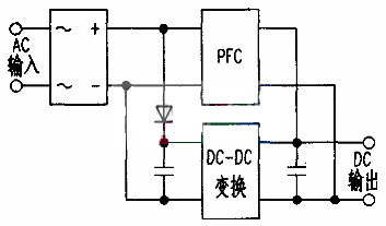 傳統的開關電源結構如下圖,是將功率因數校正電路(PFC,PowerFactorCorrection)和DC-DC變換電路串聯起來。因而效率低,要減少待機功率也相當困難。