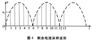 為保證剩余電流測(cè)量的實(shí)時(shí)性,該保護(hù)器采用數(shù)字采樣法測(cè)量剩余電流,將剩余電流信號(hào)轉(zhuǎn)換為圖4所示的波形,送給P87LPC767單片機(jī)內(nèi)部的A/D進(jìn)行采樣測(cè)量。