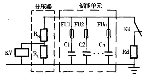 脈沖電容器儲能后,由控制電路發送命令進行觸發放電(ETcG發射)。ETCG發射精度和一致性與PPS儲能量密切相關,電容器儲能大小與其充電電壓的量值平方成正比,因此控制電路必須能精確控制充電電壓量值,這可以通過與被充電容器組并聯"分壓器一電壓繼電器組"來實現,見圖2。