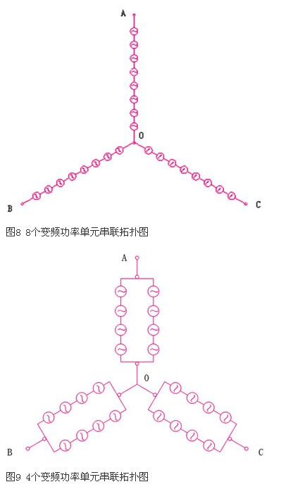 (2)同一個(gè)變流鏈中的各變頻功率單元輸出同相位、同頻率,而且電壓幅值相等;