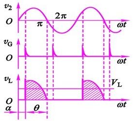 (2)q:導通角。每半個周期晶閘管導通角度。控制角越大,導通角越小,它們的和為定值α+q=p。它改變交流電的平均電壓,其平均電壓是可控的、平滑變化的。