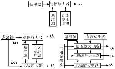 根據輸出交流電源的相數,穩頻電源可分為單相式,兩相正交式和三相對稱式。單一輸出量的穩頻穩壓源由于各相間的相移恒定,因此不需要移相調節電路。當輸出物理量既要求有電壓回路,還要求有電流回路,且電壓與電流的相位差要求既能調節又能穩定以適應不同負載時,則相應的穩頻穩壓/穩流電源應包括電壓和電流輸出回路。其結構如圖1所示。