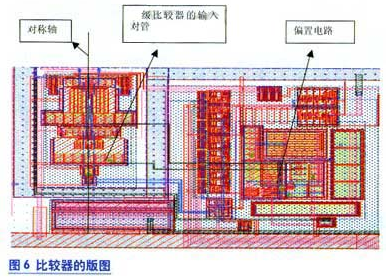芯片采用了0.18μm的1P6MCMOS設計工藝,在實現高分辨率的同時也能獲得較高的速度,模擬結果表明,分辨率可以達到12bit。在版圖設計中,為了增強差分管的匹配性,管子和連線都采用全對稱的設計結構,版圖如圖6所示,面積為120μm×130μm。