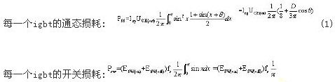 在設備穩態運行時,功率單元內整流二極管、igbt、續流二極管總的功率損耗即為散熱器的耗散功率。因此熱設計的第一步就是對上述器件的總功耗進行估算。