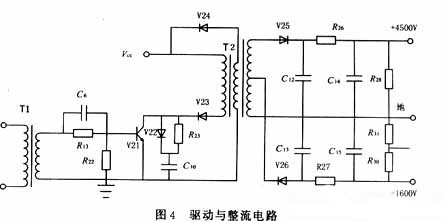 經過T1的隔離,通過調整電阻R13使輸入V21的脈沖寬度變化從而達到調壓的目的。其中加速電容C5、電阻R13按V21的穩態驅動電流確定。
