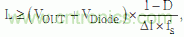 (1b)其中,D(占空比)=5 V/48 V=0.104,且△I = 0.5 A峰至峰。