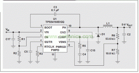 為了說明使用高開關(guān)頻率的權(quán)衡過程,我們?cè)O(shè)計(jì)了三個(gè)獨(dú)立電源,其工作頻率分別為100、300和750 kHz。所有這三種設(shè)計(jì),輸入電壓均為48V,輸出電壓均為5V,而輸出電流均為1A。這些要求常用于為一個(gè)5-V邏輯USB,或者為其它DC/DC轉(zhuǎn)換器使用的中頻通用5-V總線供電,例如:低壓降穩(wěn)壓器等。若想建立一些設(shè)計(jì)限制,所選允許紋波電壓需為50mV,其約為輸出電壓的1%;同時(shí)選擇使用0.5 A的峰至峰電感電流。德州儀器TPS54160是一種集成MOSFET的2.5-MHz、60-V、1.5-A降壓DC/DC轉(zhuǎn)換器,用作所有設(shè)計(jì)的穩(wěn)壓器。TPS54160特有外部補(bǔ)償和快速可編程頻率,適用于一些高輸入電壓的工業(yè)應(yīng)用。