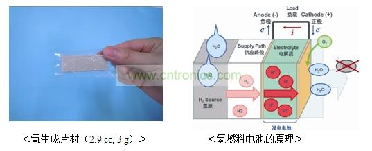 此次開發的氫燃料電池,使用了加水即可產生氫的固體,可利用水的合成進行發電,因此,發電時的生成物僅僅是水(水蒸氣),不會產生二氧化碳和有害物質(揮發性有機化合物:VOC)。廢棄時亦可作為一般垃圾處理,是極為環保的燃料電池。