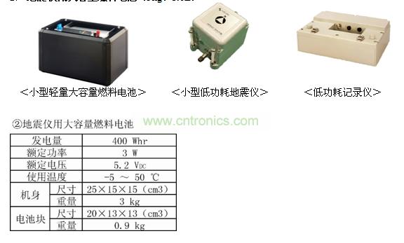 2)地震儀用大容量燃料電池(3kg、5.6L)