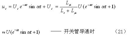 我們從(21)式以及圖3和圖4可以看出:當電源開關管Q1導通時,分布電容Cs兩端電壓(也是勵磁電感lv兩端的電壓),由一個最大振幅約等于輸入電壓U的正弦振蕩電壓與一個分布電容Cs兩端電壓的半波平均值