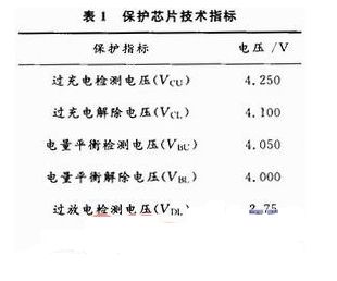 圖5摘取了保護板1中前三級(1~3級)保護電路,6~10級保護電路與此相似。所選取的芯片技術(shù)指標如表1所示,對于過充電、電平衡和過放電功能都有其檢測和解除電壓,以確保各狀態(tài)的可靠進入和退出。