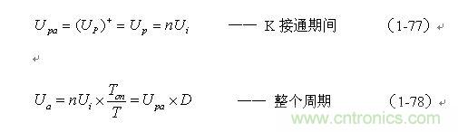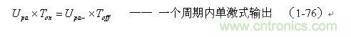(1-76)式就是計算單激式變壓器開關電源輸出電壓的表達式。式中,Upa和Upa-分別稱為單激式變壓器開關電源輸出電壓的正半波平均值和負半波平均值。