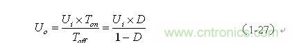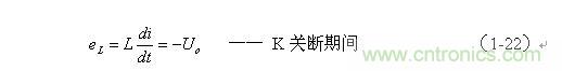 上式中Uo前的負(fù)號(hào),表示K關(guān)斷期間電感產(chǎn)生電動(dòng)勢(shì)的方向與K接通期間電感產(chǎn)生電動(dòng)勢(shì)的方向正好相反。