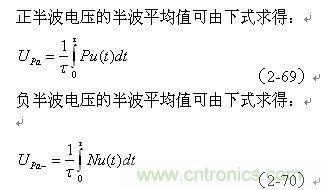 (2-69)、(2-70)式中,Upa和Upa-分別為各種脈沖波形的正、負(fù)半波平均值;Pu(t)和Nu(t)分別為各種脈沖波形的正波形函數(shù)(正半周)和負(fù)波形函數(shù)(負(fù)半周),τ為正、負(fù)脈沖寬度。大部分雙極性交流脈沖,其正、負(fù)半波平均值的絕對(duì)值都相等,但符號(hào)相反。