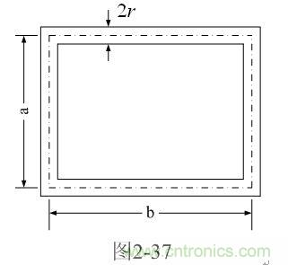 【說明】上式是用來計(jì)算變壓器線圈電感的計(jì)算公式。由于變壓器鐵芯的磁回路基本是封閉的,變壓器鐵芯的平均導(dǎo)磁率相對來說比較大。鐵芯的導(dǎo)磁率一般在產(chǎn)品技術(shù)手冊中都會給出,但由于大多數(shù)開關(guān)變壓器的鐵芯都留有氣隙,留有氣隙的磁回路會出現(xiàn)磁場強(qiáng)度以及磁感應(yīng)強(qiáng)度分布不均勻,因此,(2-103)式中的導(dǎo)磁率只能使用平均導(dǎo)磁率,技術(shù)手冊中的數(shù)據(jù)不能直接使用。