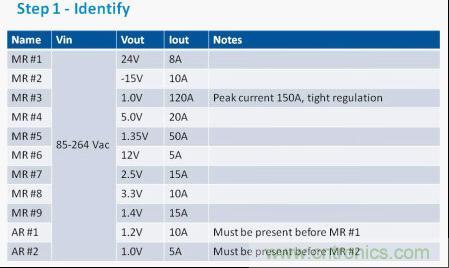 圖1:第一步是列出項目的電源需求。在我們的這個例子中,我們假設有11路電壓軌,