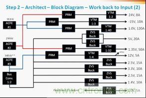 構建系統的第一個步驟是創建一個電源系統的方框圖,從輸出開始,然后向輸入后向推進。從最低功率級別開始它的運作更好,并從那里繼續工作,以便可以審查功率元件類別,并隨功率級別的增加在必要時做出改變。