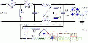 第一種方法: 傳統的線性電源作為輔助電源。它是用普通的矽鋼片低頻變壓器降壓后,又經過四只二極管全波整流,經C5、C6平滑濾波后加到三端穩壓器7815輸入端。電路見圖2: