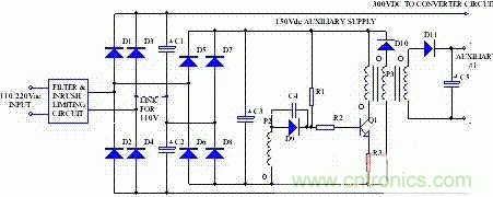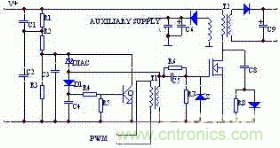 圖4:一種自激式反激式高頻變換器構成的輔助電源