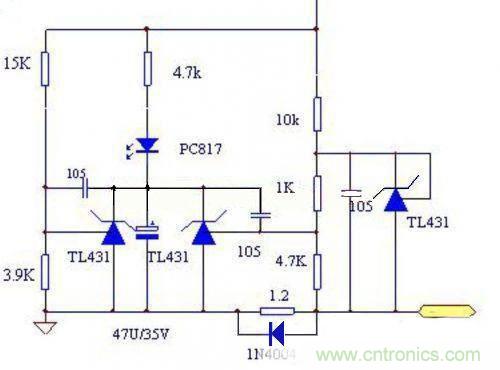 缺點:由于TL431是2.5V基準,故恒流取樣電路的損耗極大,不適合做輸出電流過大的電源。而此電路的致命缺陷是不能空載,故不適合做外置式的LED電源,所以下面我們對線路的一些缺陷進行了改進。
