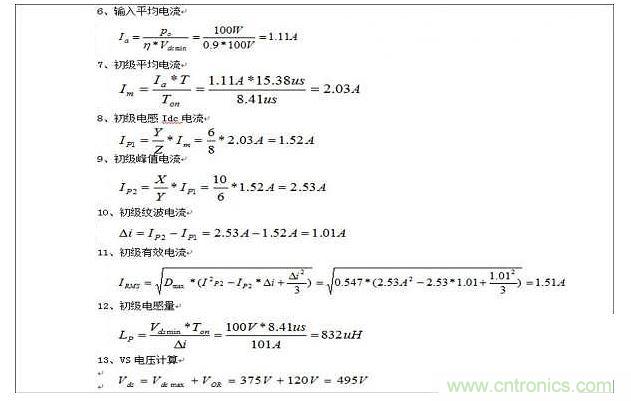 第一種方法是先計(jì)算出峰值電流、紋波電流,再通過(guò)紋波電流來(lái)計(jì)算出原邊電感量,公式:LP=V*TON/Ip。